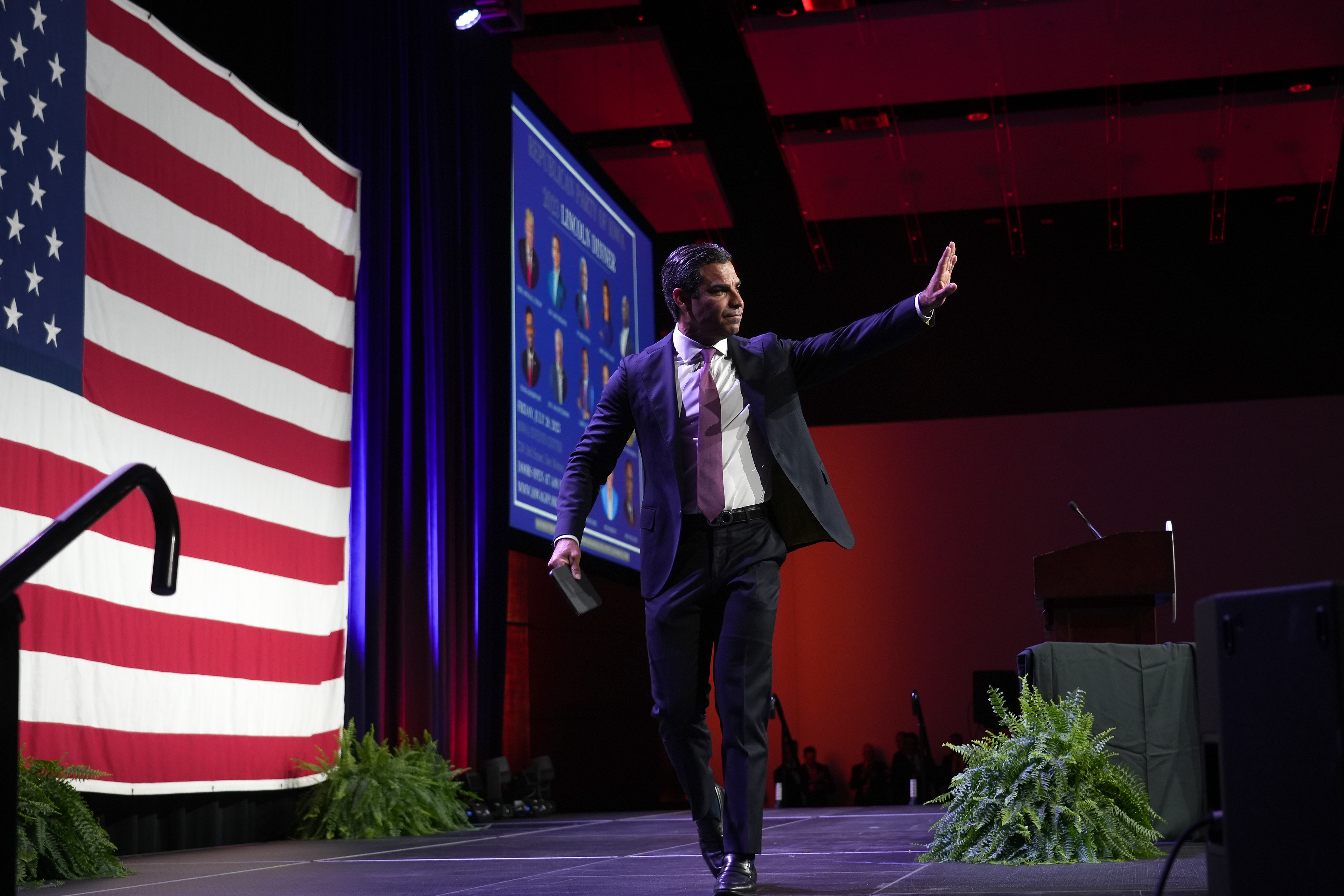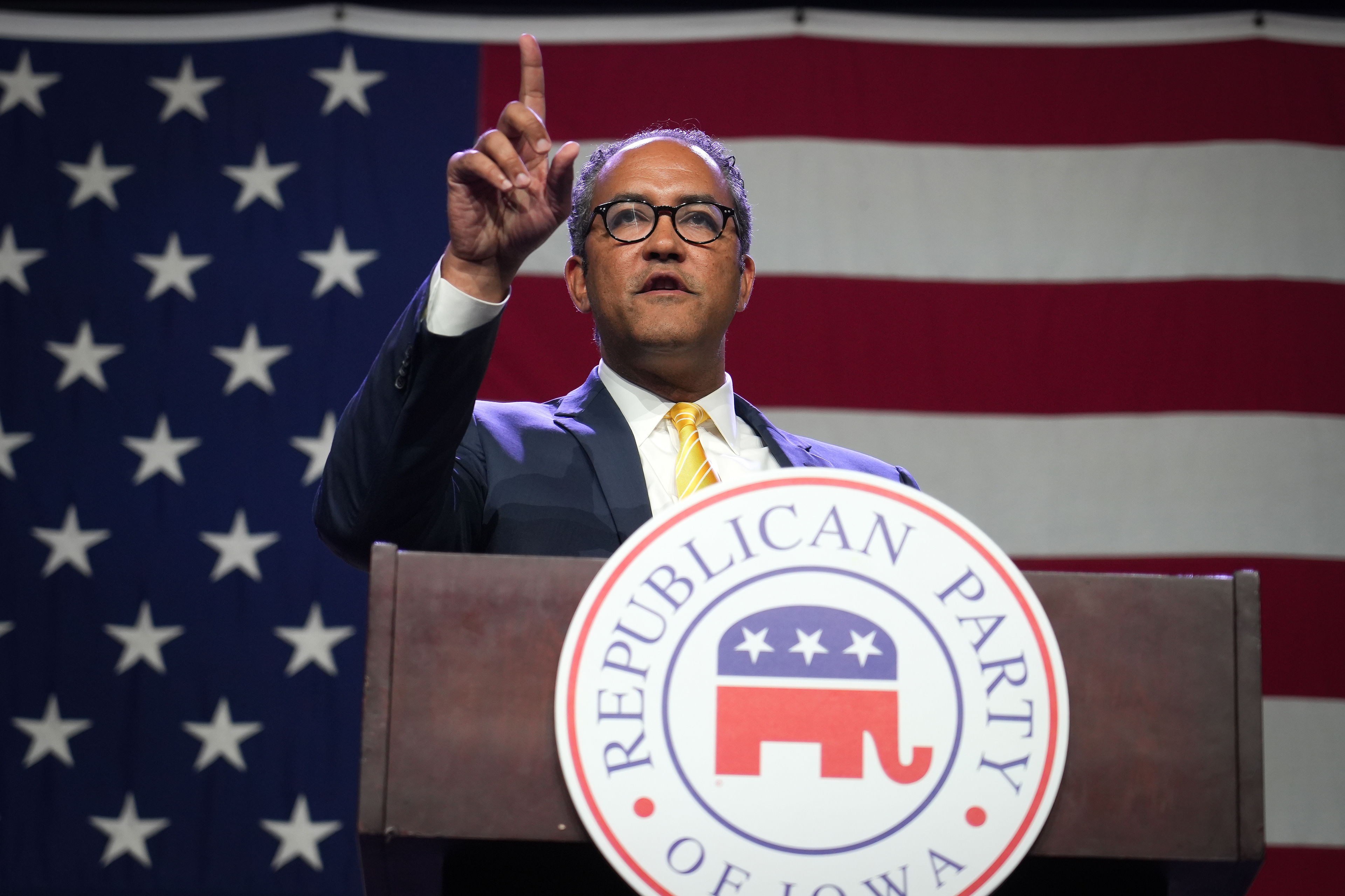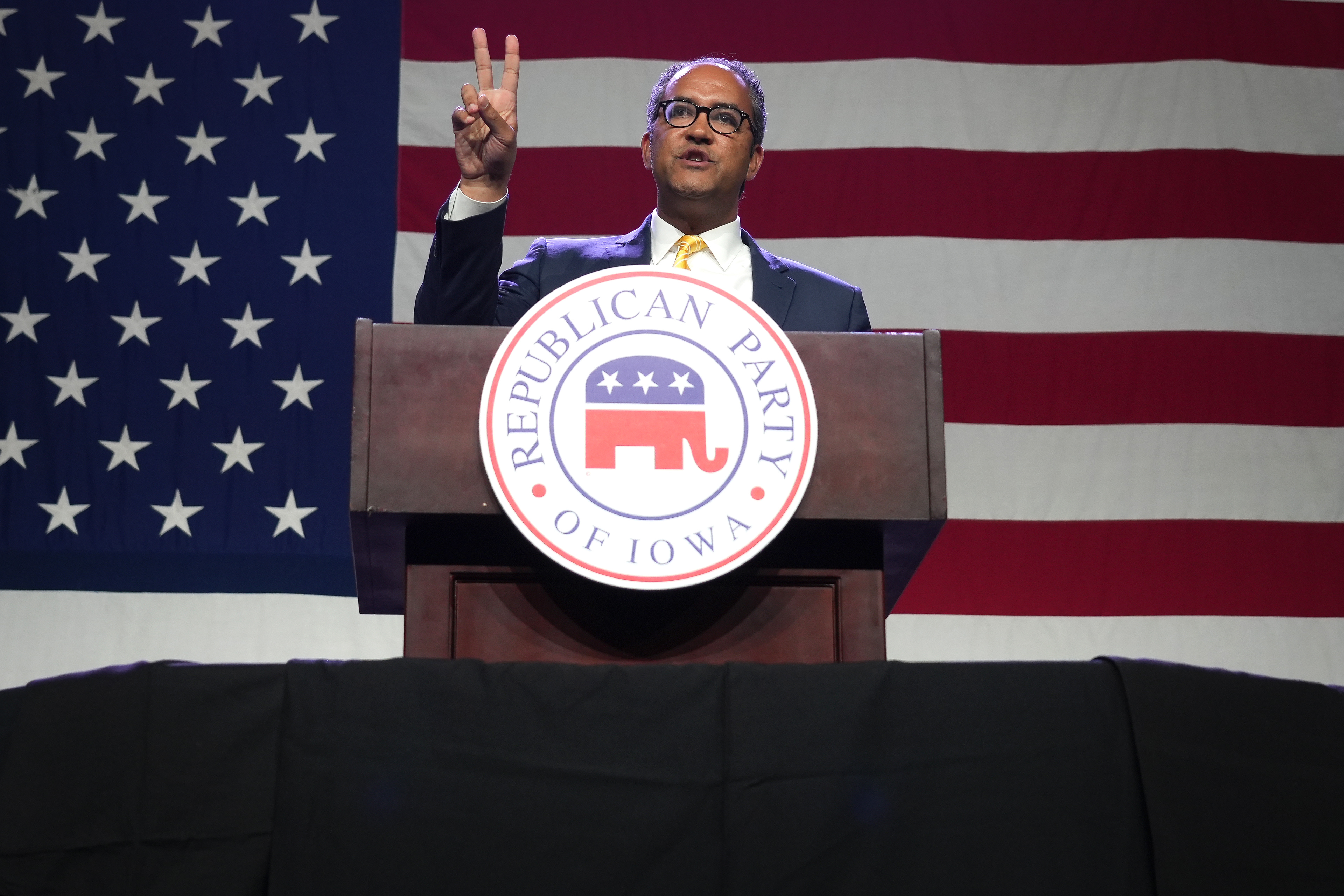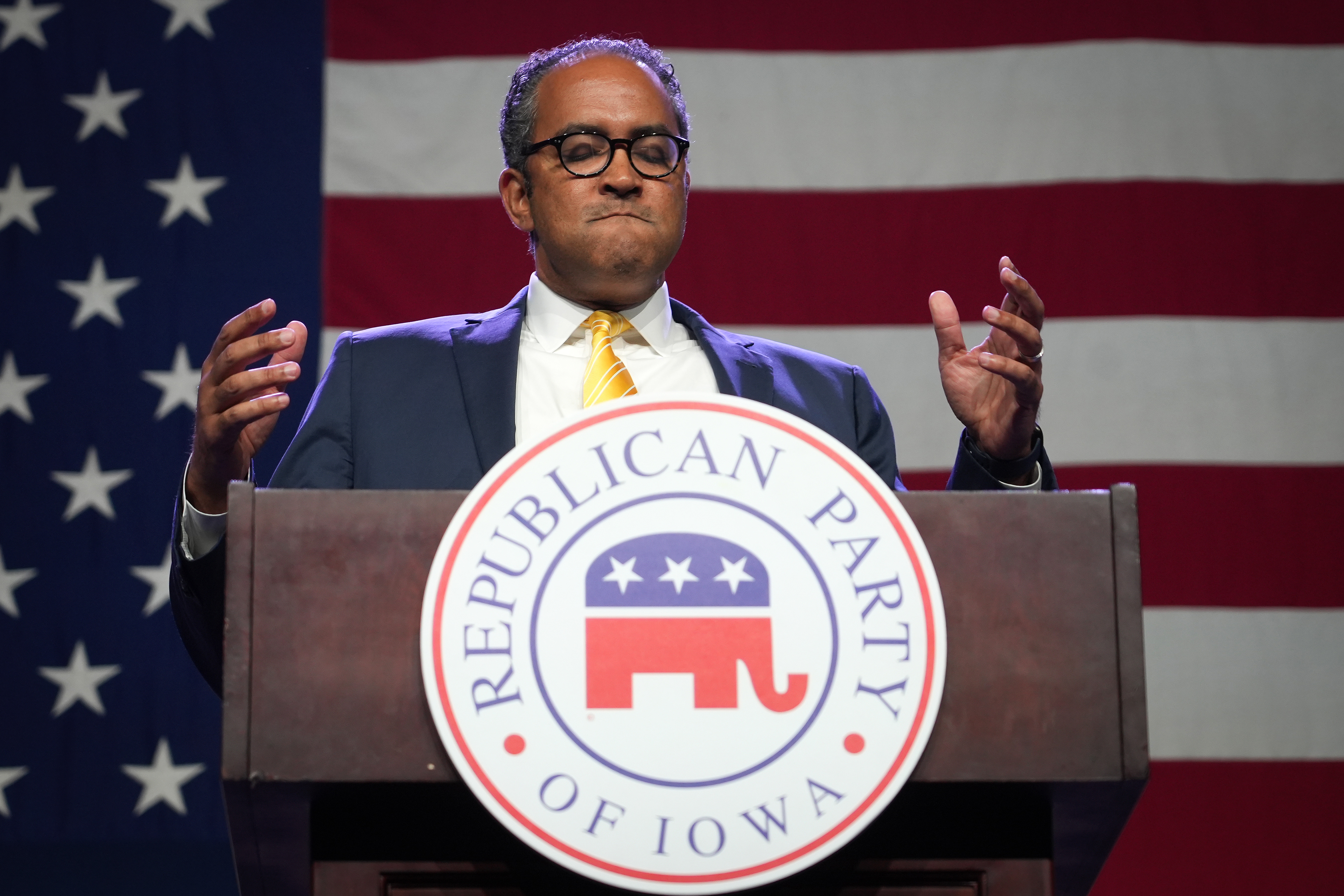 Republican presidential candidate businessman and pastor Ryan Binkley speaks at the Iowa Faith & Freedom Coalition’s fall banquet, Saturday, Sept. 16, 2023, in Des Moines, Iowa. (AP Photo/Bryon Houlgrave)