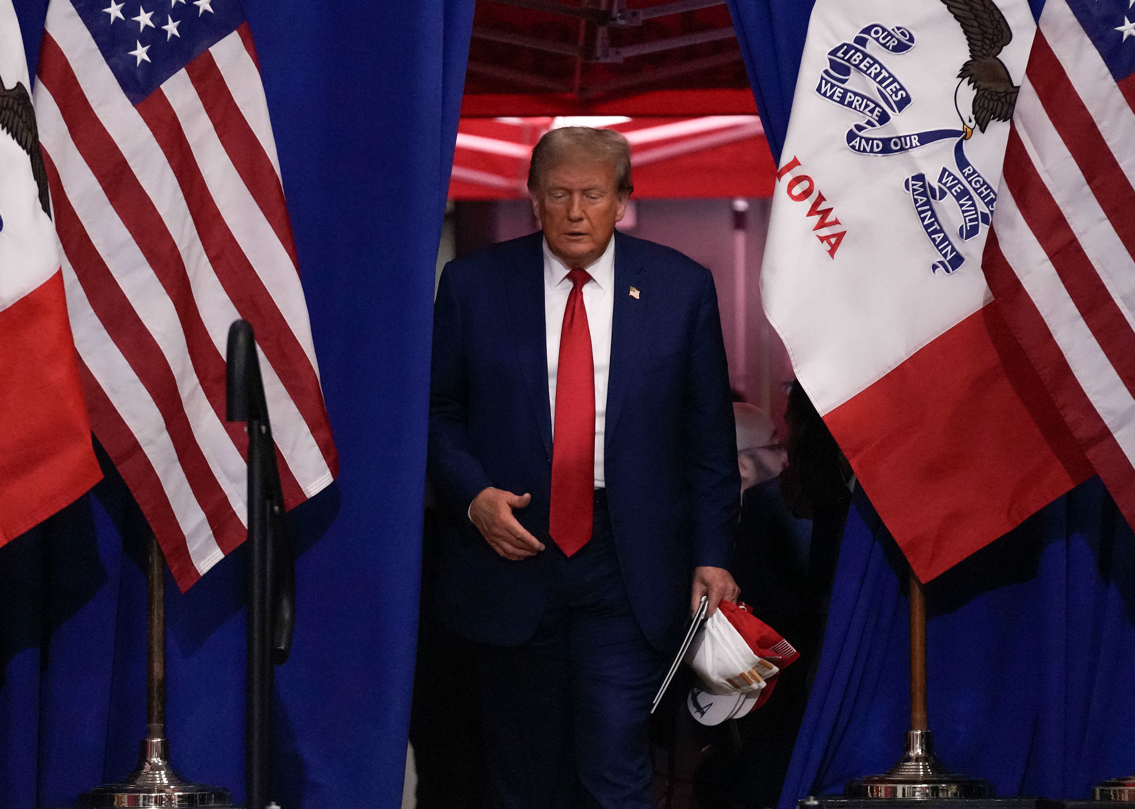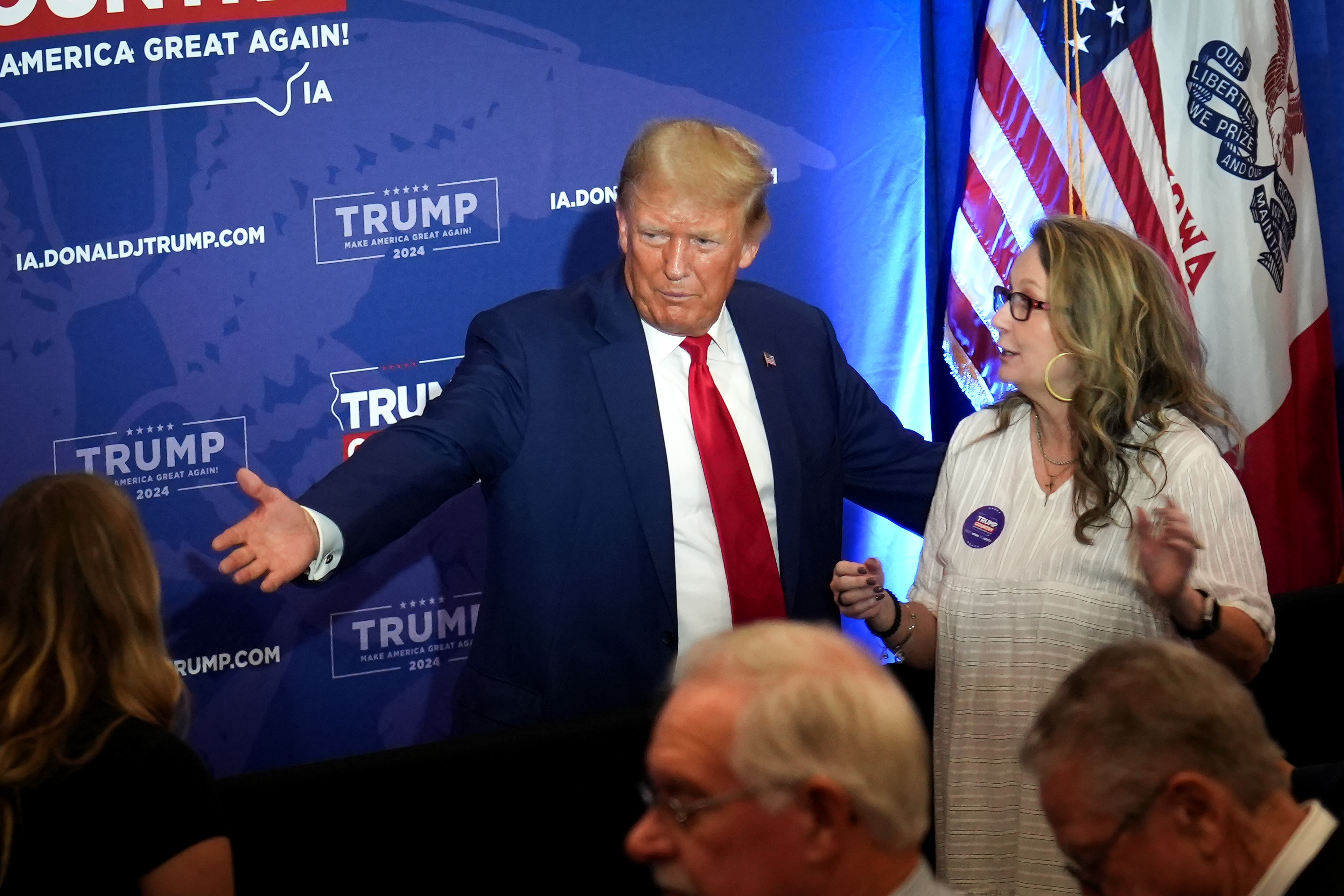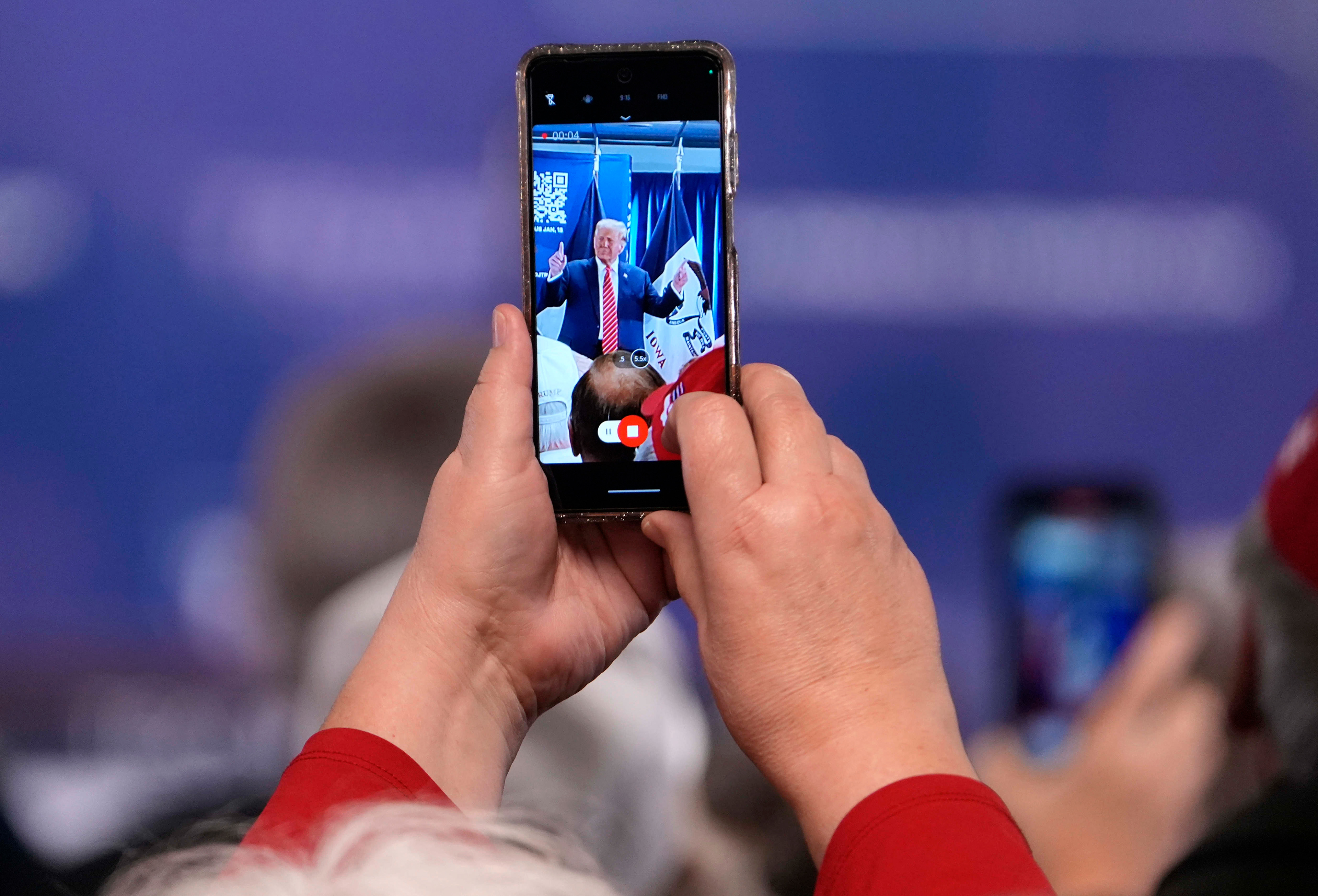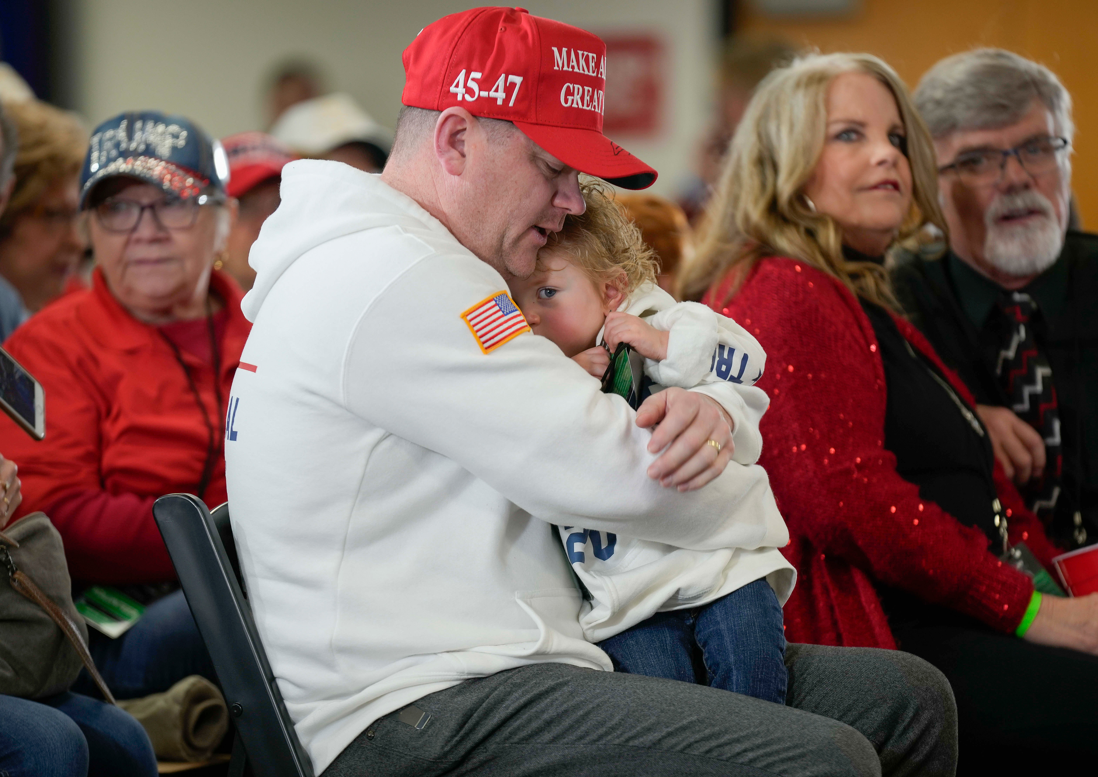 Supporters of Republican presidential candidate and former president Donald Trump gather to hear him speak during a rally Saturday, Nov. 18, 2023, in Fort Dodge, Iowa. (AP Photo/Bryon Houlgrave)
