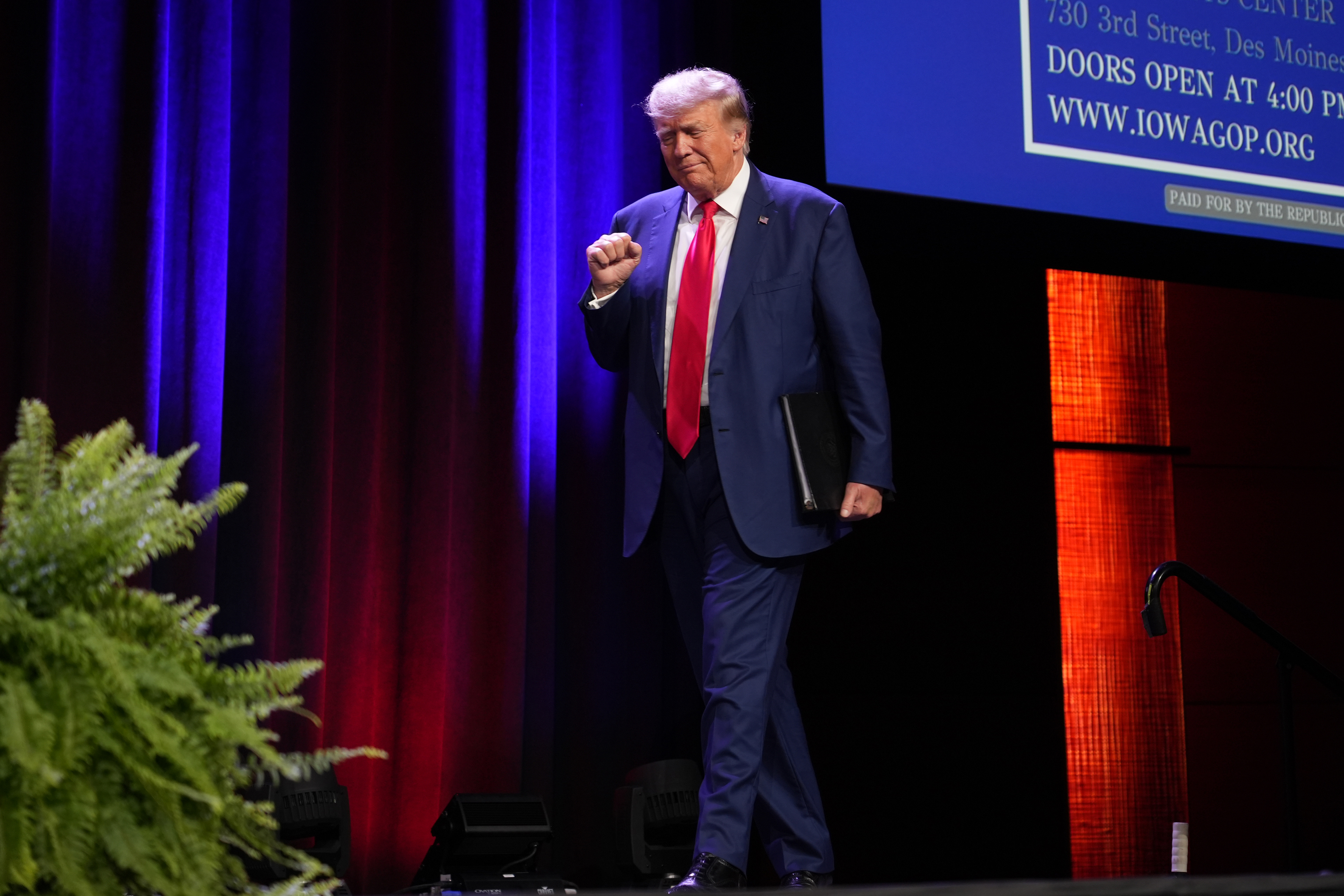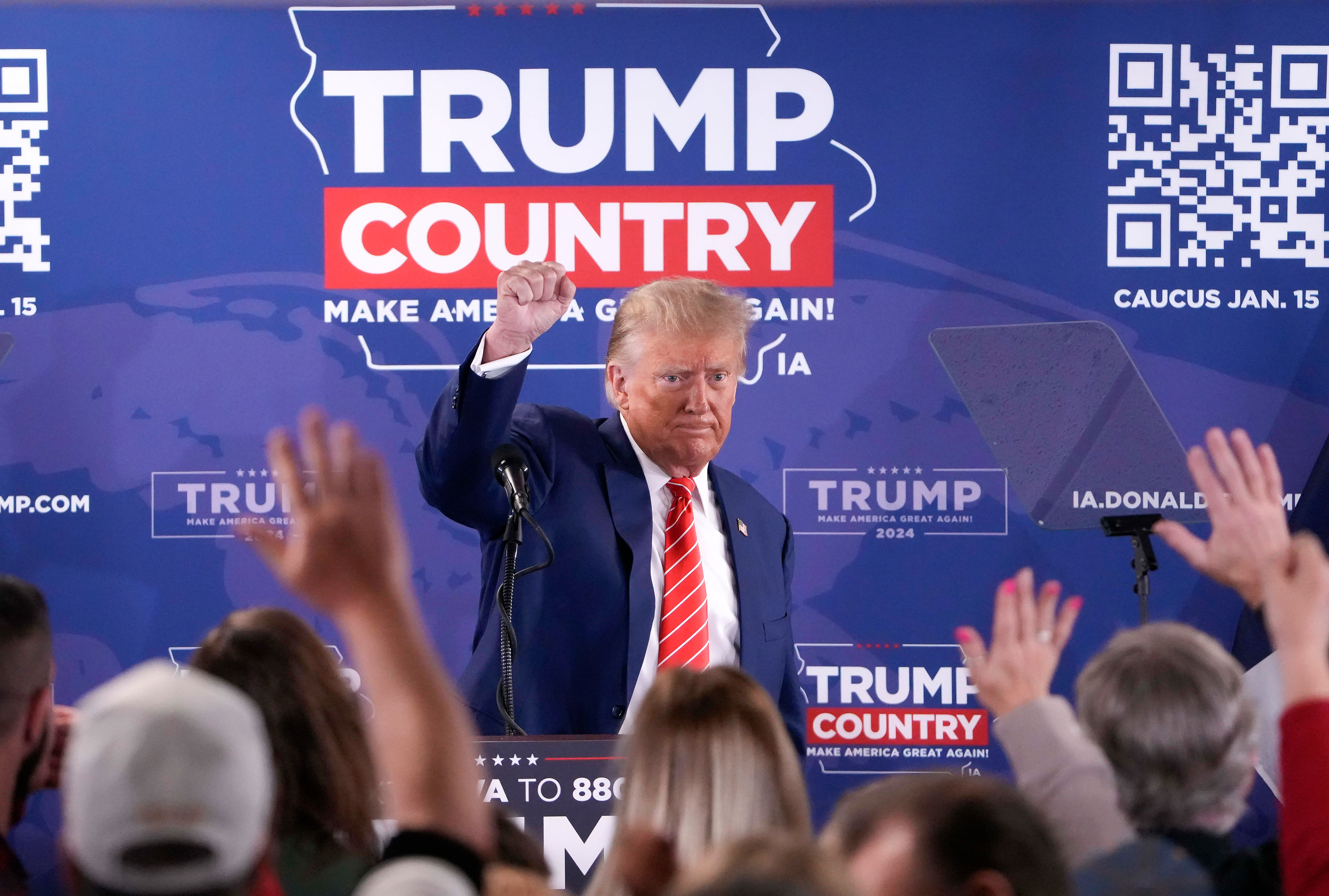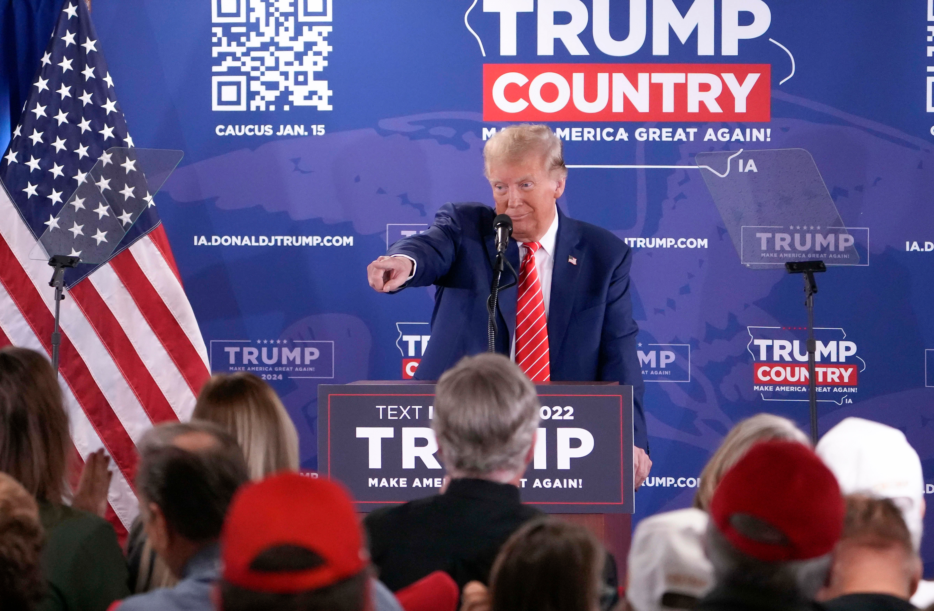 Republican presidential candidate and former President Donald Trump speaks during a rally Saturday, Nov. 18, 2023, in Fort Dodge, Iowa. (AP Photo/Bryon Houlgrave)