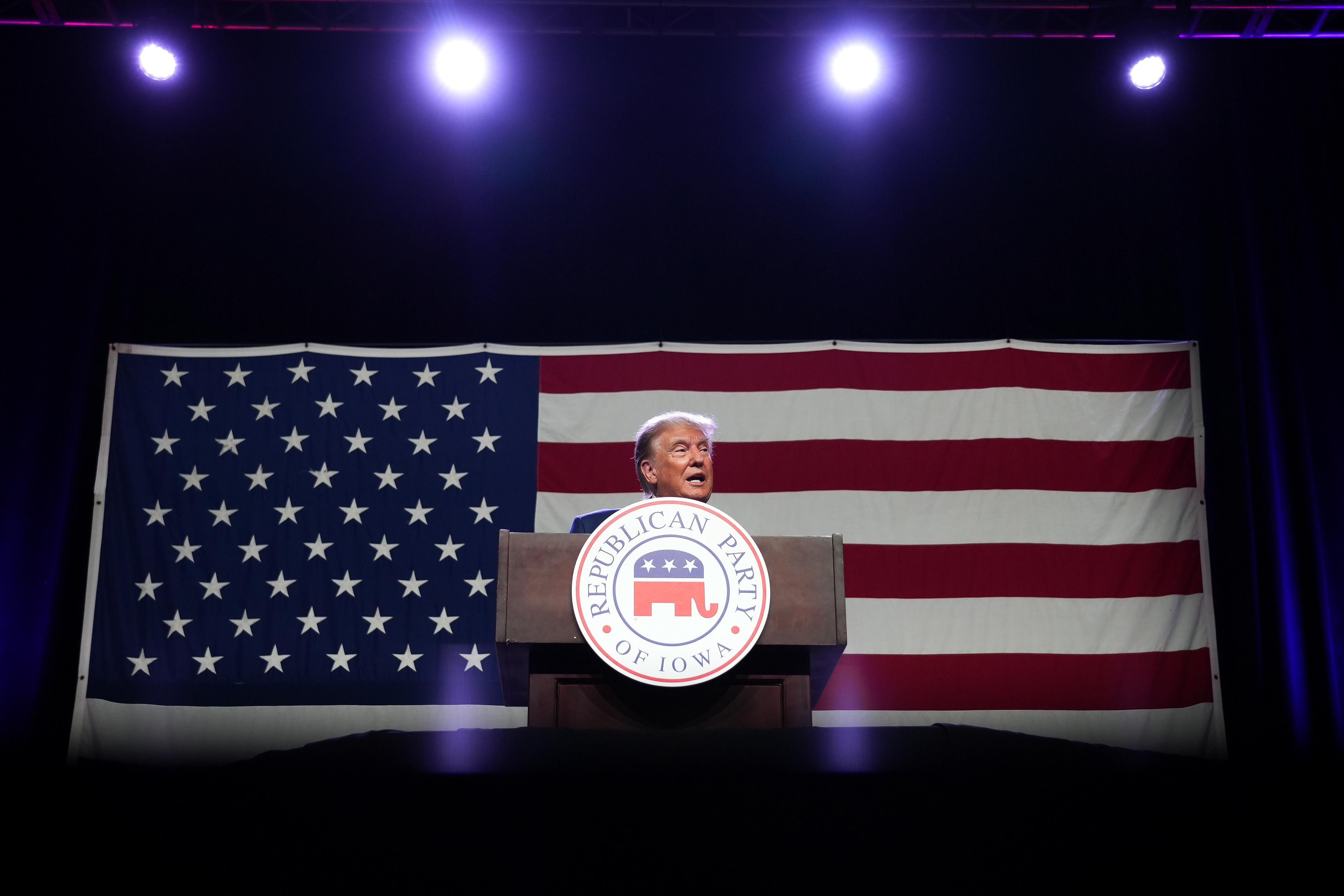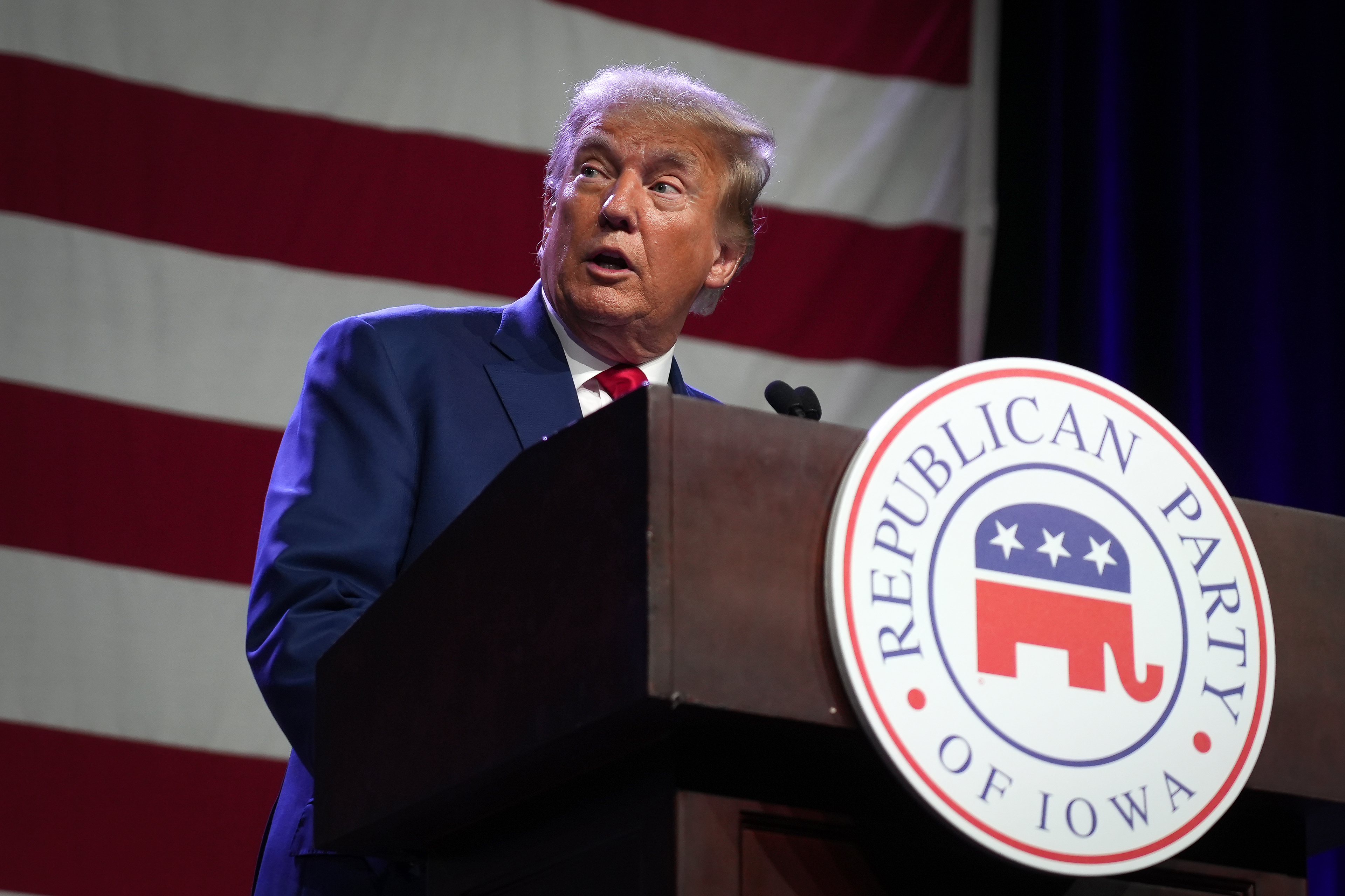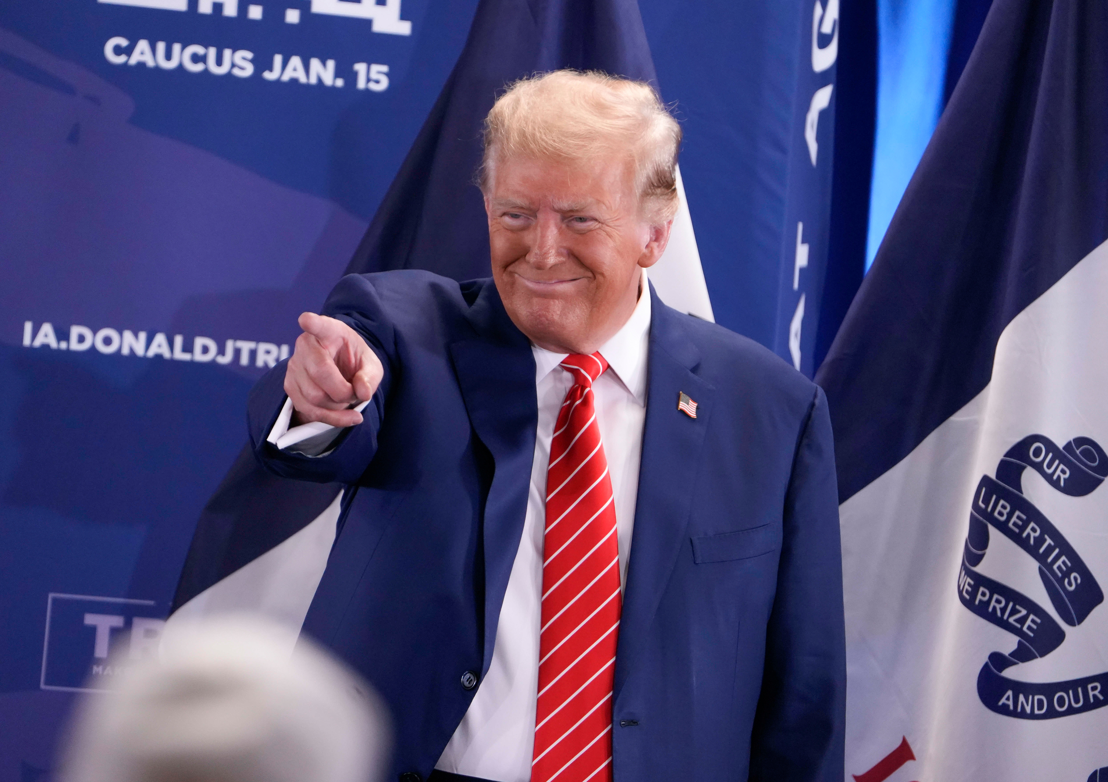 Republican presidential candidate and former President Donald Trump speaks during a rally Saturday, Nov. 18, 2023, in Fort Dodge, Iowa. (AP Photo/Bryon Houlgrave)