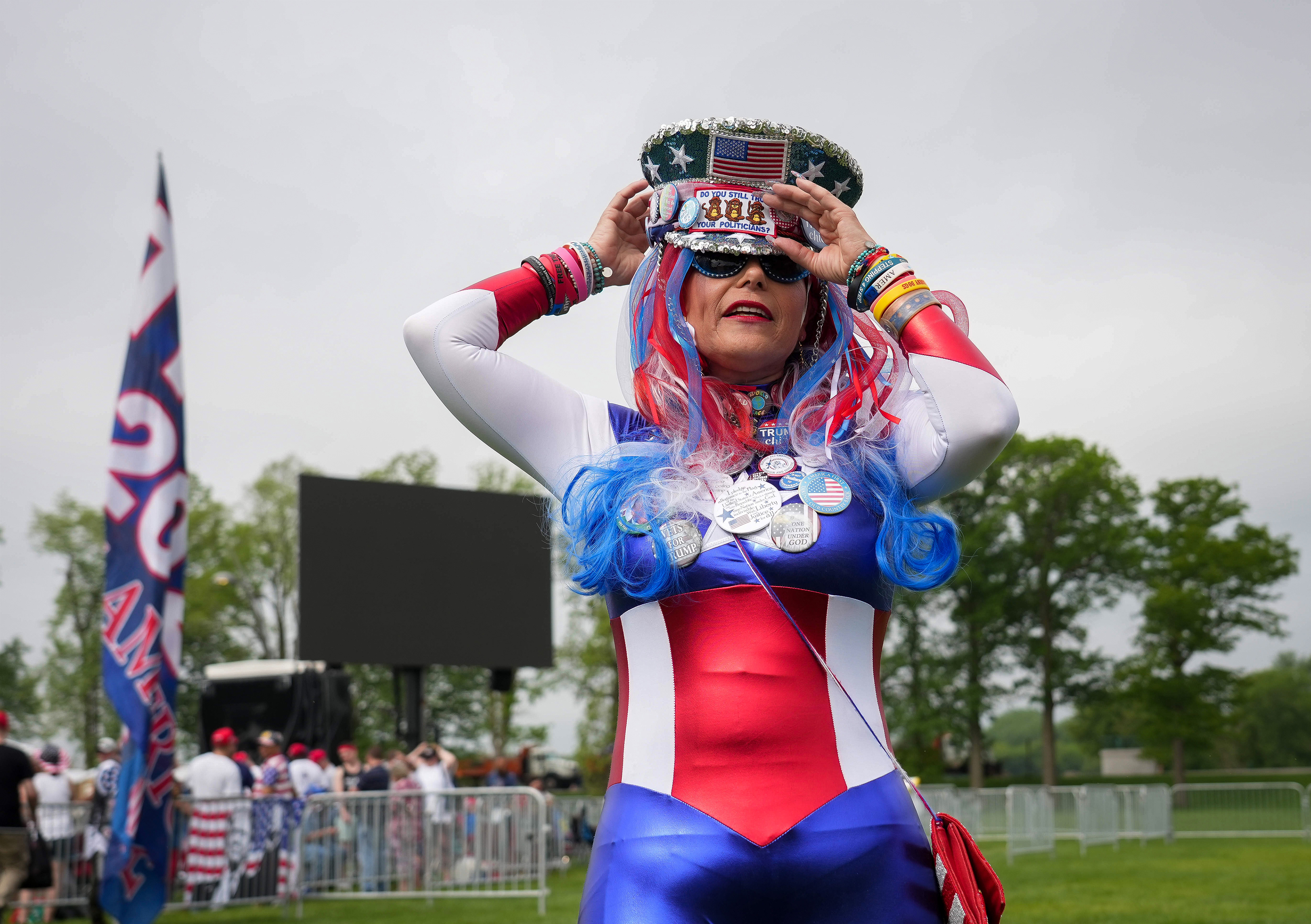 A supporter of Republican presidential candidate and former President Donald Trump wears an American flag in her cowboy boot before Trump spoke during a rally Saturday, Nov. 18, 2023, in Fort Dodge, Iowa. (AP Photo/Bryon Houlgrave)