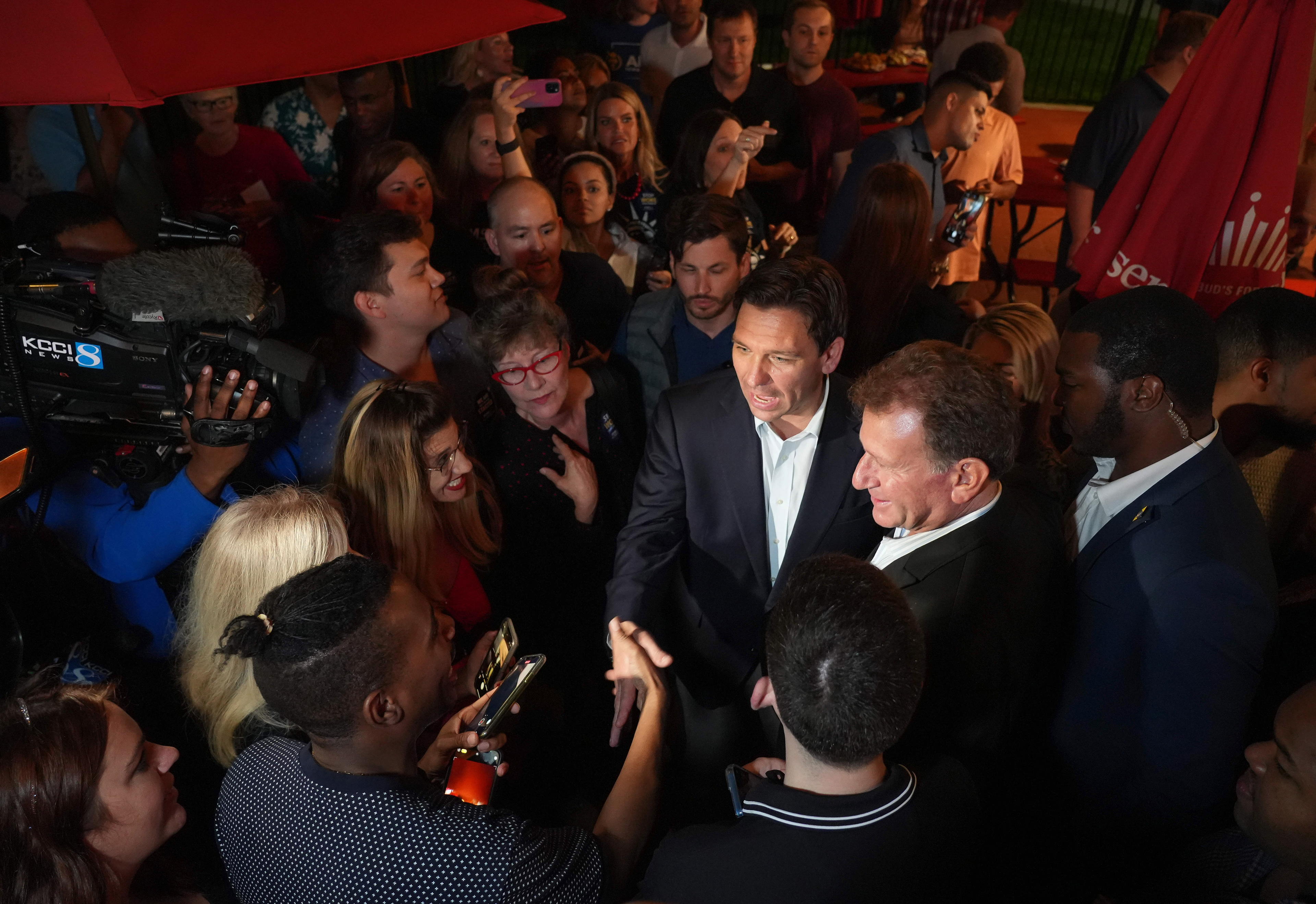 Republican presidential candidate Florida Gov. Ron DeSantis speaks during a rally with Iowa Gov. Kim Reynolds, Monday, Nov. 6, 2023, in Des Moines, Iowa.